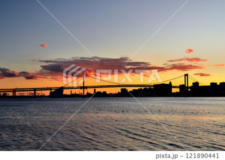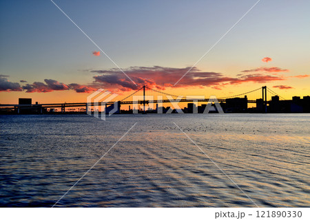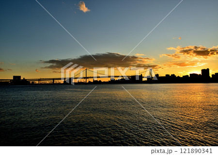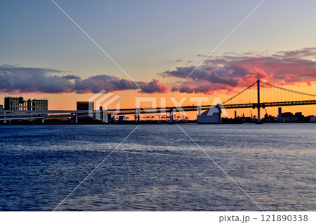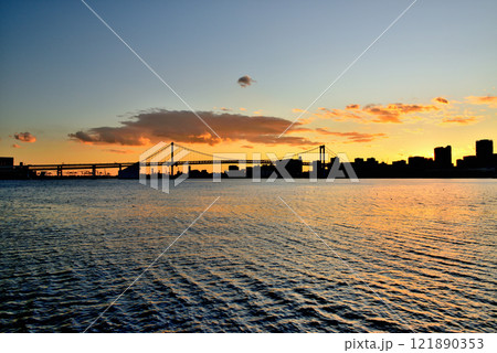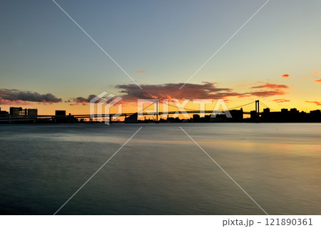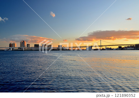 晴海ふ頭公園から レインボーブリッジとお台場海浜公園の夕景