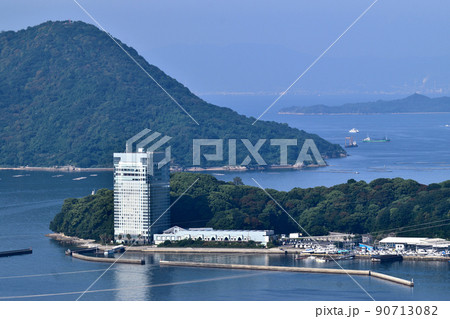 広島市街地の港湾部の風景です。元宇品公園や出島地区などが見えます。瀬戸内海の島々の美しさをどうぞ。