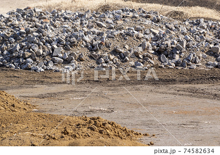 早春のグラウンドの改修工事中の江戸川河川敷風景