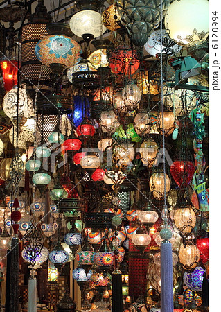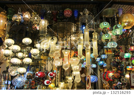 モザイクガラスが美しいイスタンブールの市場グランバザールのトルコランプ