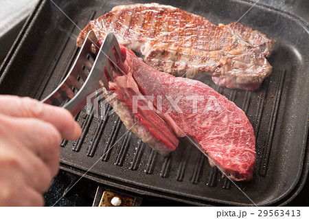 グリルパンでサーロインステーキを焼く(国産黒毛和牛)