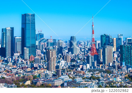 日本の東京都市景観 東京シティビュー。麻布台ヒルズや東京タワーなどを望む