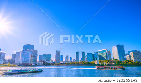 日本の東京都市景観 新風景。水上バス・ヒミコや竜馬、橘丸、竹芝、浜松町、汐留…。東京タワーや麻布台