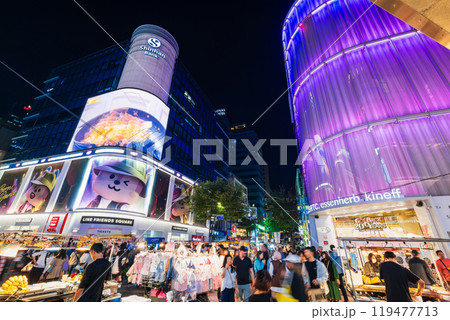 ソウル 夜の明洞メインストリート ※一部ソフトフォーカス