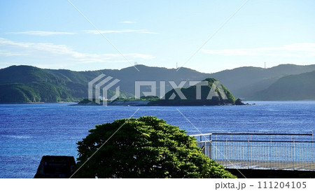 沖縄県座間味村阿嘉島から見た座間味島の朝の風景