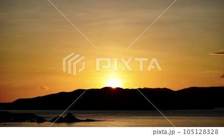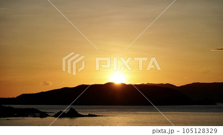 沖縄県座間味村阿嘉島から見た渡嘉敷島の日の出