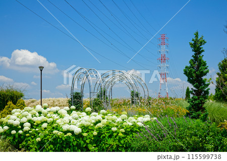 アナベルとサルビア・レウカンサなど ガーデン 宮前公園