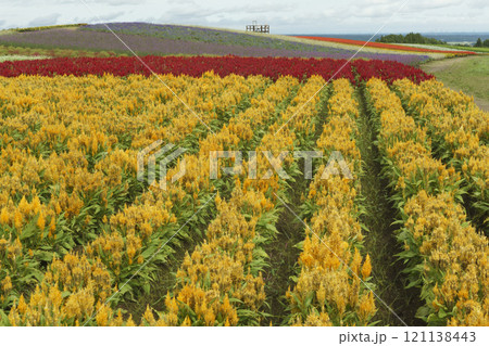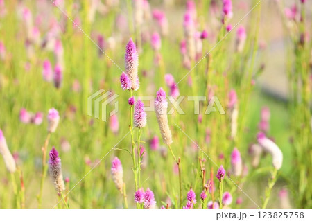 カラフルなお花畑に咲くケイトウ Cockscomb blooming in a colorful f
