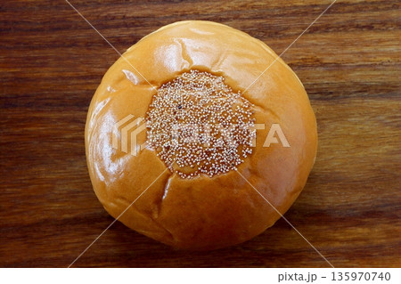 真上から見たあんぱんの上のけしの実