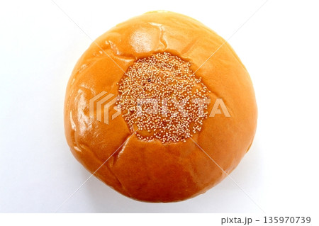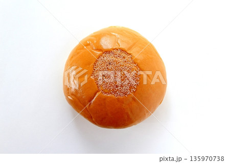 真上から見た白背景のあんぱんの上のけしの実