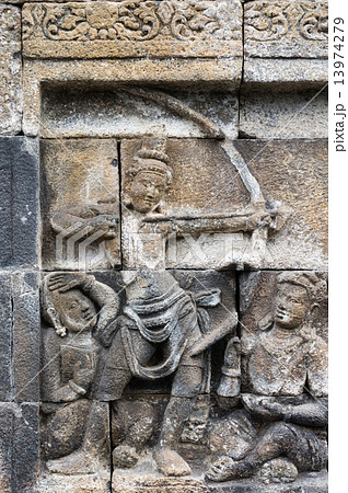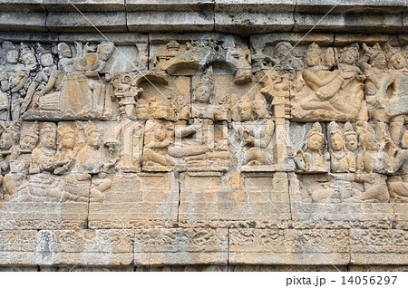 ジャワ島 ボロブドゥール寺院遺跡 方形壇回廊 レリーフ