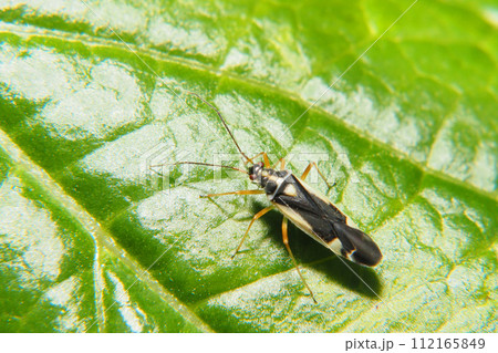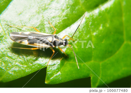葉の上にいるケブカキベリナガカスミカメ