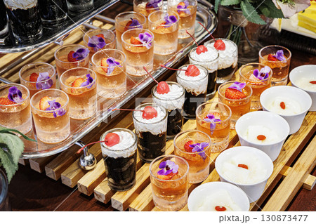 洒落なケーキバイキングのイメージ画像素材 パフェやババロアの画像