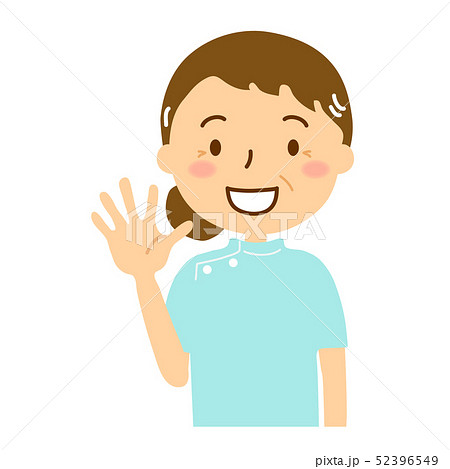 ケーシー白衣水色女性手を振る
