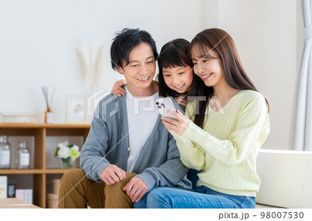 制服を着た子供と家族(入学式・卒業式・スマホ)