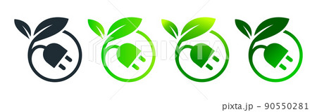 再生可能なエネルギーのプラグの葉っぱの省エネイメージ、ベクターアイコンイラスト素材緑色