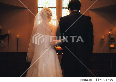 教会・チャペルで結婚式を挙げる新郎新婦(人前式)