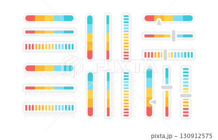 Speedometer and Level Gauge Vector Set. Editable Meters, Scales, and Score Indicators with smile icons..