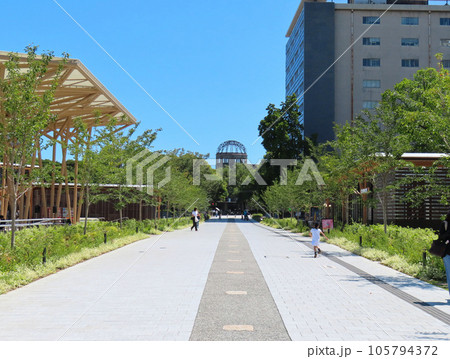 平和記念資料館ー原爆死没者慰霊碑ー原爆ドームを結ぶ軸線が広島ゲートパーク内にも延長された敷石
