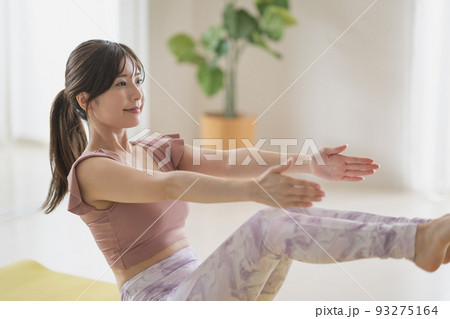 ピラティス・ヨガ・体幹トレーニングをする女性