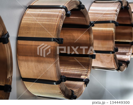 Copper wire coils on display in a manufacturing facility with focus on industry and production processes