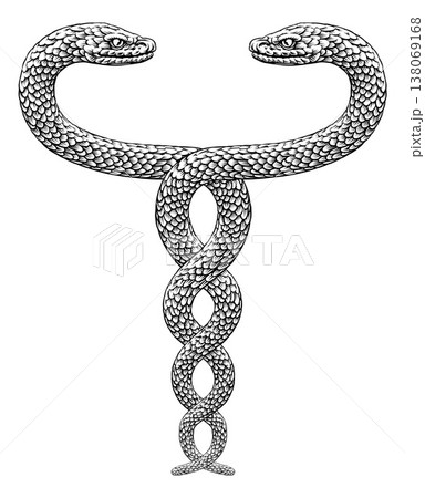 Snakes Two Intertwined Helix Vintage Illustration