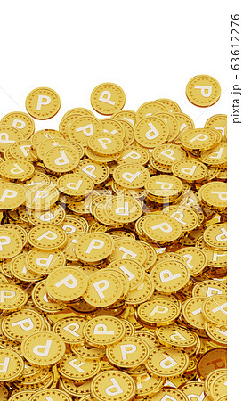 Pの文字(ポイントの頭文字)が刻印されたたくさんの金貨の透過3DCGレンダリング画像