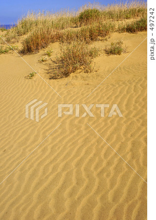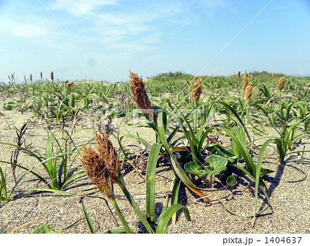 夏の鳥取砂丘と砂丘植物 鳥取県 鳥取砂丘 コウボウムギ