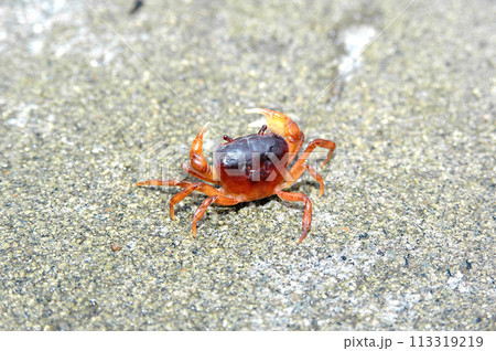 オトリ生け簀の土台のタタキに棲み着いたサワガニ
