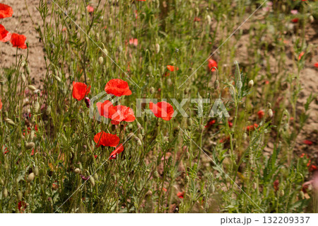 赤いヒナゲシの花(春、五月)