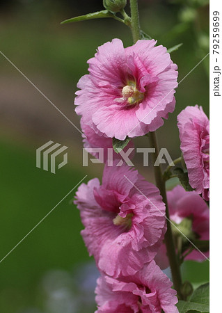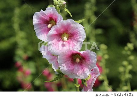 初夏の満開のタチアオイの風景