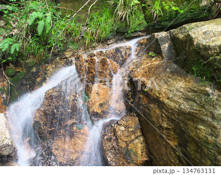 栃木県那須乙女の滝周辺の木に囲まれた清流の流れ