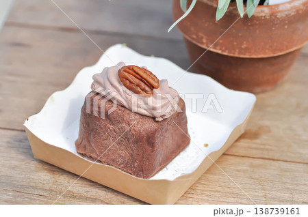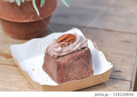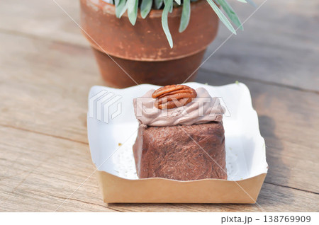 Coffee cream chiffon cake with icing. High quality photo