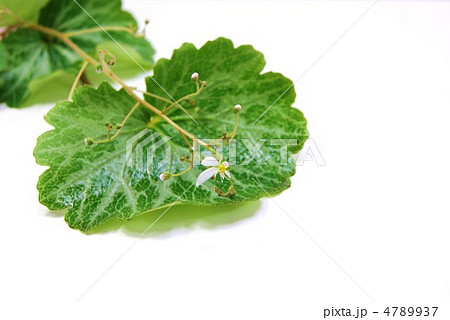 ユキノシタの斑入りの葉と可憐な花・横位置