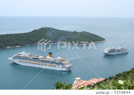 世界遺産ドブロヴニクに停泊中の豪華客船