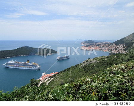 世界遺産ドブロヴニクに停泊中の豪華客船