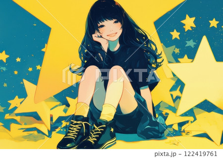 星に彩られたかわいい日本人の女の子(アニメ・マンガ・少女・異世界)