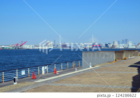 コスモスクエア海浜緑地から見る大阪港と神戸港の風景