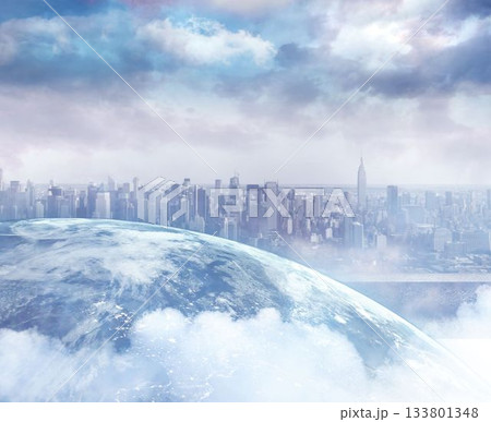 Picture of the earth in front of a city
