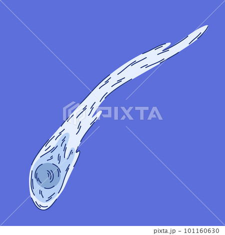 Illustration of a blue ice comet with a long flaming tail on a blue background in cartoon style