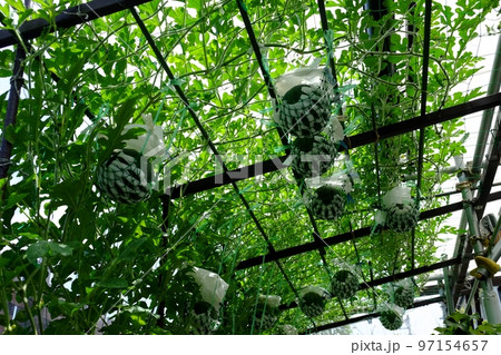 スイカの空中栽培、成長中の幼果