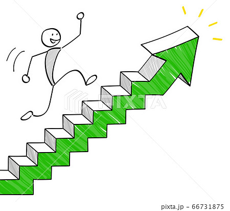 階段の矢印を上る人物 成長イメージ
