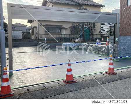 住宅 工事 外構 駐車スペース コンクリート金コテ 人物ボディパーツ 施工例