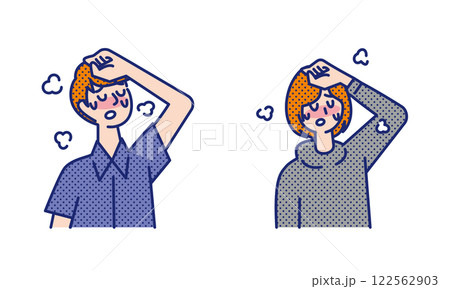 発熱があり息が苦しそうな若い男女のイラスト