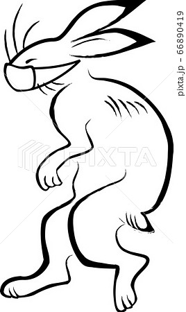 マスク姿のウサギ(鳥獣戯画)