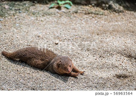 コビトマングース 巣穴の前で長く寝そべる ロングサイズ