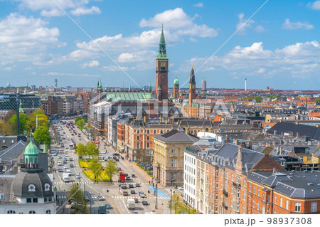 Cityscape of downtown Copenhagen city skyline in Denmark
