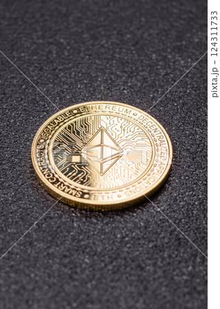 Ethereum cryptocurrency dummy in the form of a round iron coin