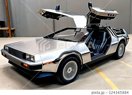 バックトゥザフューチャー デロリアン ガルウイングの車 映画 タイムマシーン [AI生成画像]