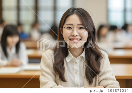 大学で授業を受ける日本人の女子大学生「AI生成画像」